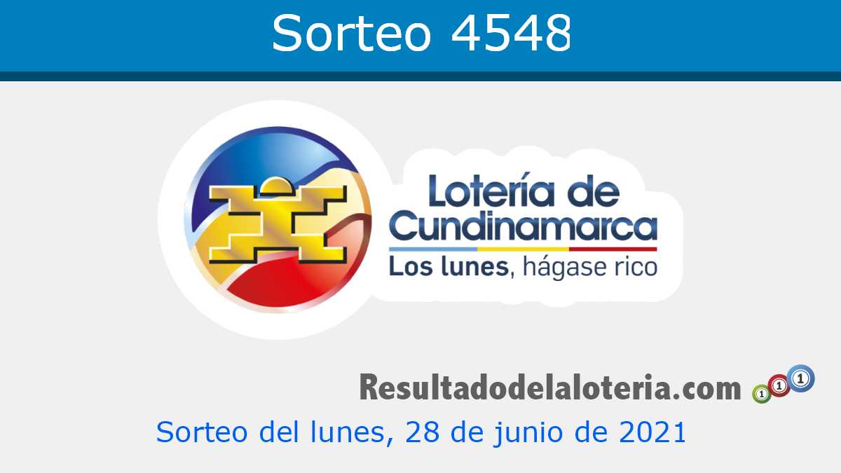 Si el lunes es festivo el sorteo quedará aplazado para el siguiente día hábil. Loteria de Cundinamarca a que hora juega. El Lunes 28 de Junio de 2021 se realizo el sorteo número 4548 de su Loteria de Cundinamarca y ya puedes consultar los resultados para saber si fuiste un feliz ganador recuerda que la Loteria de Cundinamarca tiene para ustedes un plan de premios en donde puedes ganar muchisimos millones de pesos.